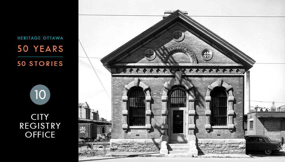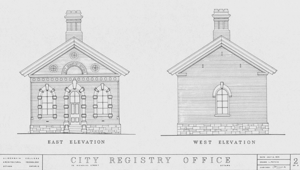 Le bureau d’enregistrement de la ville fait partie d’un regroupement d’institutions judiciaires du 19e siècle qui comprend aussi le palais de justice et la prison du comté de Carleton. L’architecte, identifié dans les dossiers comme « M. Hudson », a sans doute suivi le plan du prototype d’immeuble dressé en 1868 par Kivas Tully, premier architecte et ingénieur provincial de l’Ontario.