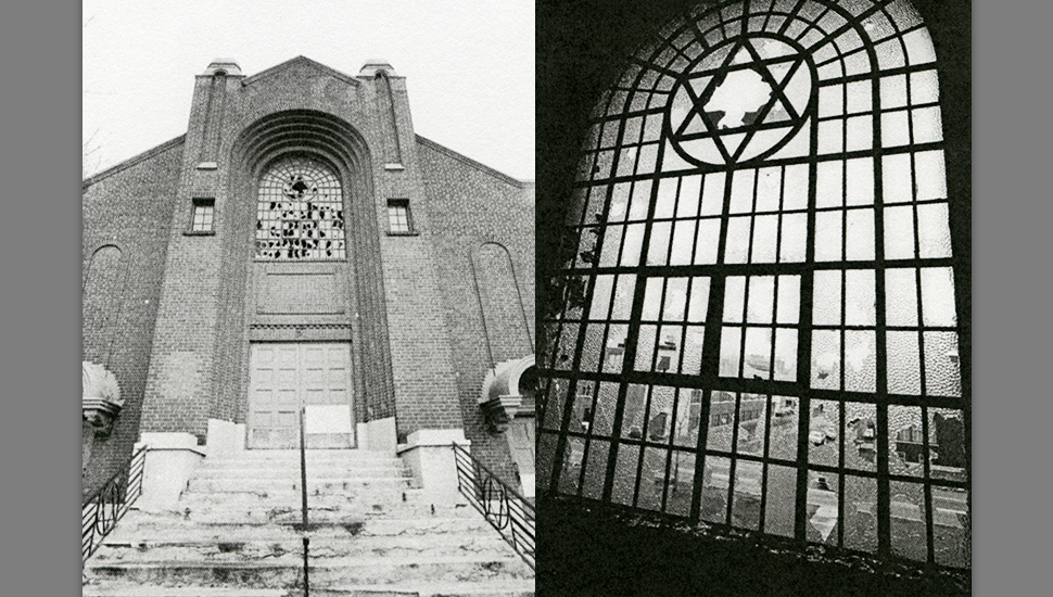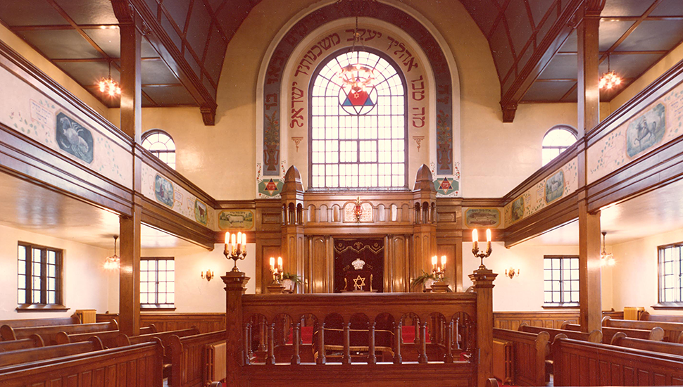 À l’intérieur, elle respectait le modèle traditionnel de sanctuaire d’une shul orthodoxe. À l’extérieur cependant, les tours rappelaient plutôt les pavillons ou les tours basses qui flanquent de nombreuses synagogues d’Europe de l’Est.