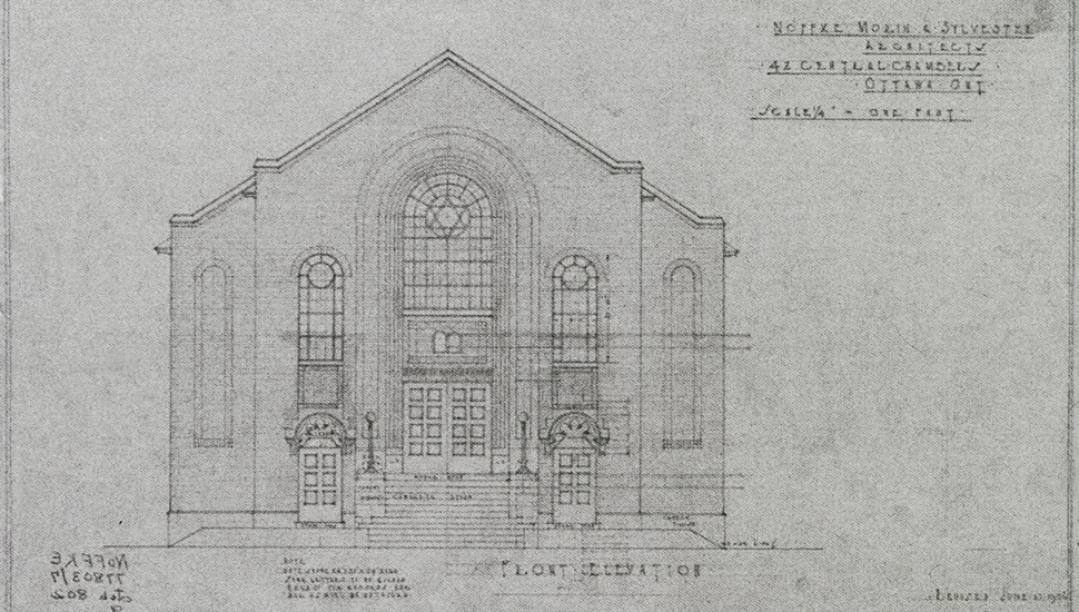 La synagogue de la rue Murray, située à l’angle nord-est de l’intersection Murray-King Edward de 1927 à 1978, était l’œuvre du cabinet d’architectes d’Ottawa Noffke, Morin et Sylvester.