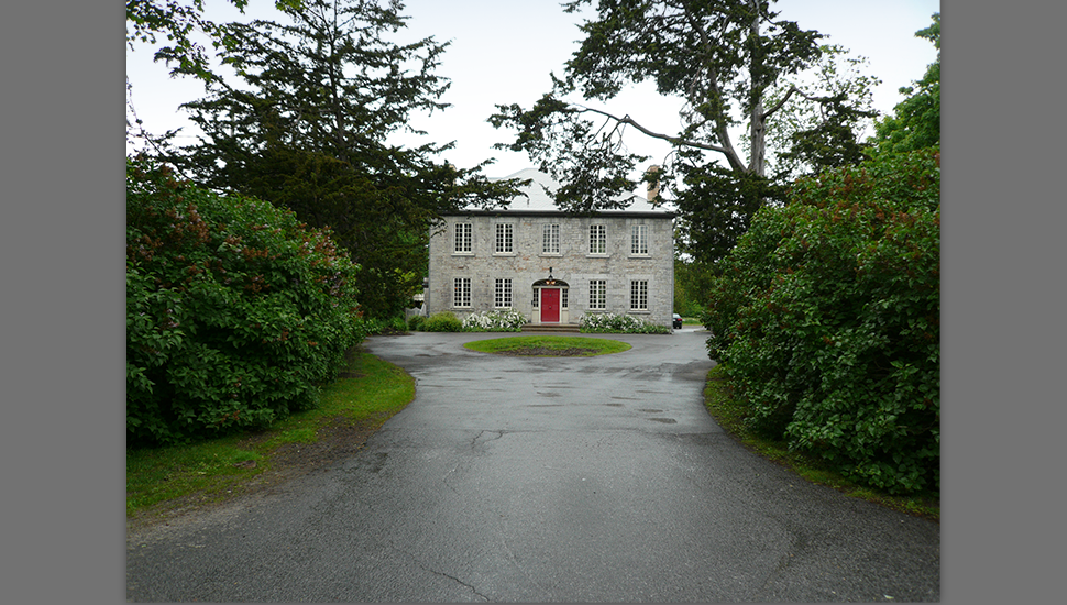 La maison en pierre de deux étages et demi de style géorgien a été construite (1831 à 1834) pour l’immigrant écossais William Thompson. Sa façade symétrique à cinq baies, les deux colonnes de part et d’autre de l’entrée, le muret de pierre calcaire surmonté d’un chaperon moulé et un vaste jardin potager entouré sur trois côtés d’un mur de moellons de pierre calcaire sont autant de traits caractéristiques de la propriété.