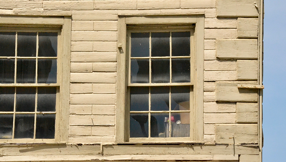 L’étage de l’élévation avant est largement intact. Il comporte cinq fenêtres à guillotine 6/6 équidistantes.