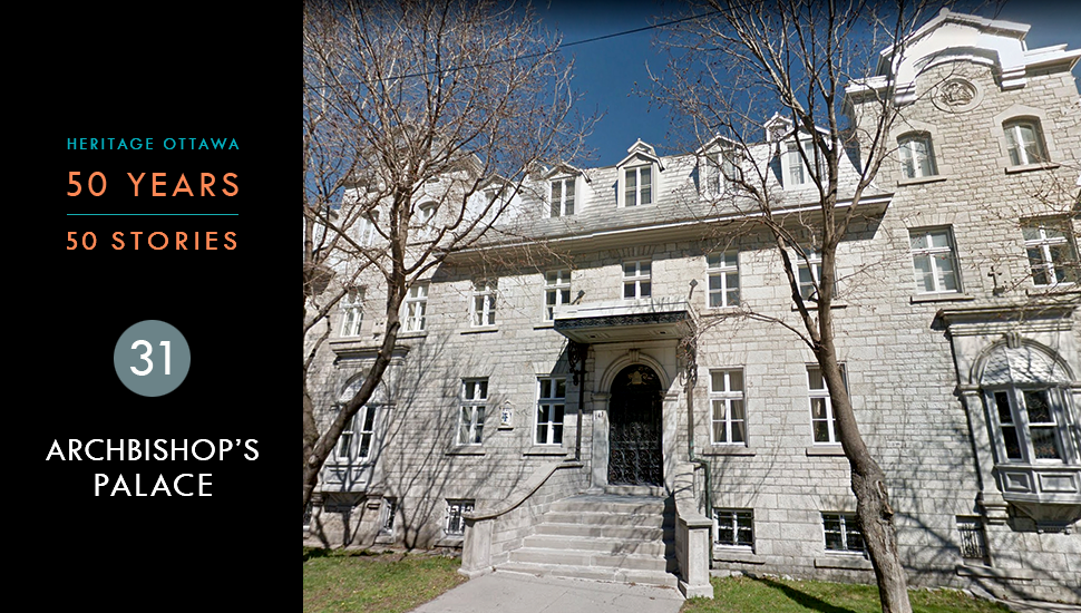 L’archevêché (ou palais archiépiscopal ou, jusqu’en 1886, palais épiscopal) a été construit en 1849-1850, dans la même période que la basilique-cathédrale Notre-Dame et le Collège de Bytown sur la promenade Sussex. L’édifice de style géorgien est attribué au père Damase Dandurand (1819-1921). Il est encore aujourd’hui la résidence officielle de l’archevêque catholique d’Ottawa.