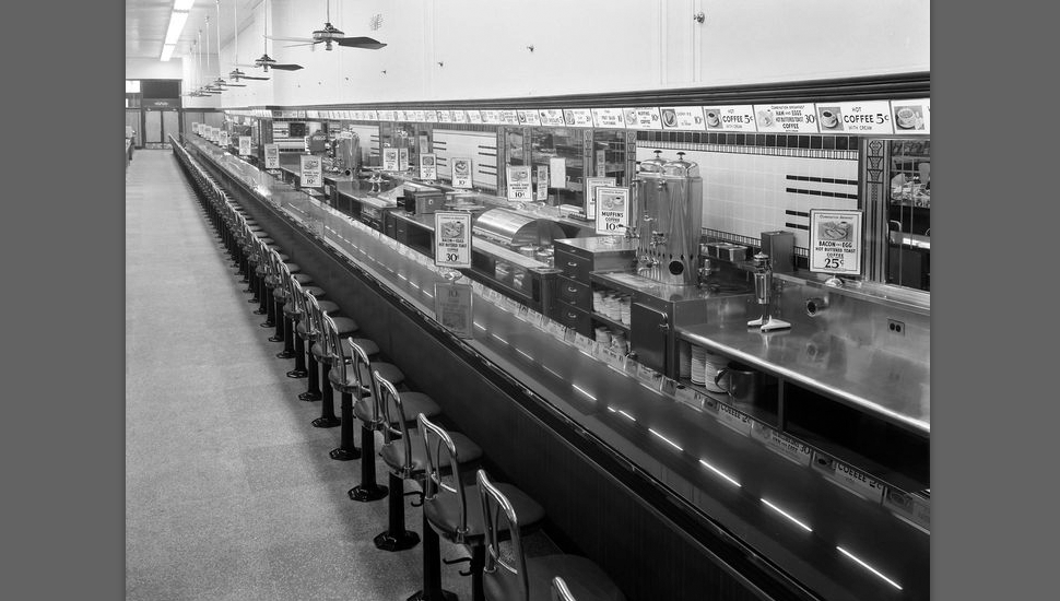 Le deuxième étage de l’élévation avant sur la rue Sparks comporte un revêtement de pierre calcaire finement ouvré, orné de motifs stylisés sculptés en bas relief, de pilastres cannelés, de corniches à degrés et de fenêtres à battant en acier, le tout dans le plus pur style art déco. Son comptoir casse-croûte, qui fait 55 mètres, est à l’époque le plus long comptoir droit en son genre au Canada.