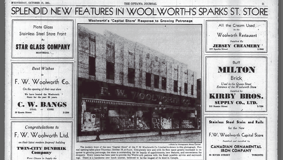 En 1940-1941, F.W. Woolworth achète les 168, 170 et 172-176, rue Sparks, ainsi qu’un terrain vacant donnant sur la rue Queen. Le 16 octobre 1941, un nouveau magasin à rayons de deux étages est construit, s’étendant de la rue Sparks à la rue Queen.