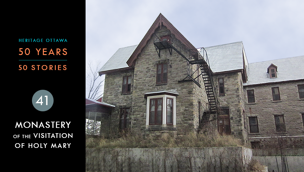 Le monastère de la Visitation Sainte-Marie a été construit entre 1910 et 1913 par les entrepreneurs d’Ottawa Poirier et fils. Le monastère était structuré selon un plan médiéval, avec une église monastique dans le coin nord-ouest. L’architecte (inconnu) l’avait fait dans le style classique français, avec un intérieur néogothique. Une cour cloîtrée attenante était entourée par des ailes de deux étages et demi en pierre et à toit en croupe d’un sobre style géorgien, abritant infirmerie, secteur de soins palliatifs, bureau de la mère supérieure, réfectoire, cuisine, chambres à coucher des religieuses et locaux de travail.