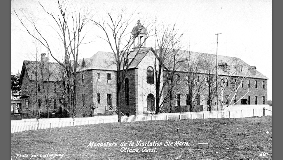 En 1910, les Sœurs de la Visitation Sainte-Marie, un ordre cloîtré fondé à Annecy (France) en 1610, achète un domaine de 5,2 acres au 114, chemin Richmond dans Ottawa-Ouest. La mère supérieure Marguerite Marie de Viry et sept autres religieuses venues de France se sont logées dans la villa « The Elms » (1865) qui se trouvait sur le terrain, jusqu’à ce que le monastère soit achevé.
