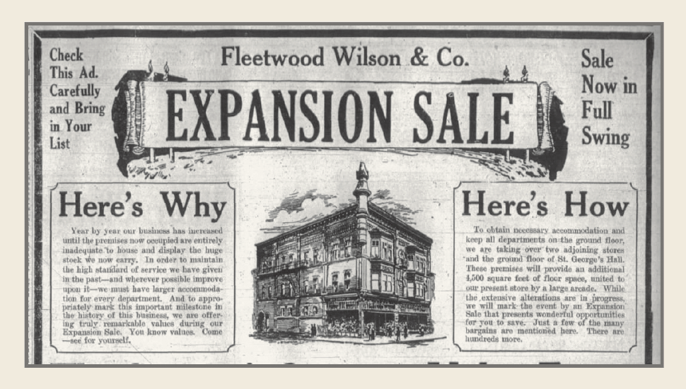En 1900, un immeuble d’appartements de quatre étages à toit plat est ajouté à l’est. Le nom de l’ensemble changera plusieurs fois au fil des ans : mercerie Crosby Carruthers Company (1898), The Emporium (1907), magasin Fleetwood Wilson (1916), hôtel Ritz (1937) et Maison Somerset (1973).