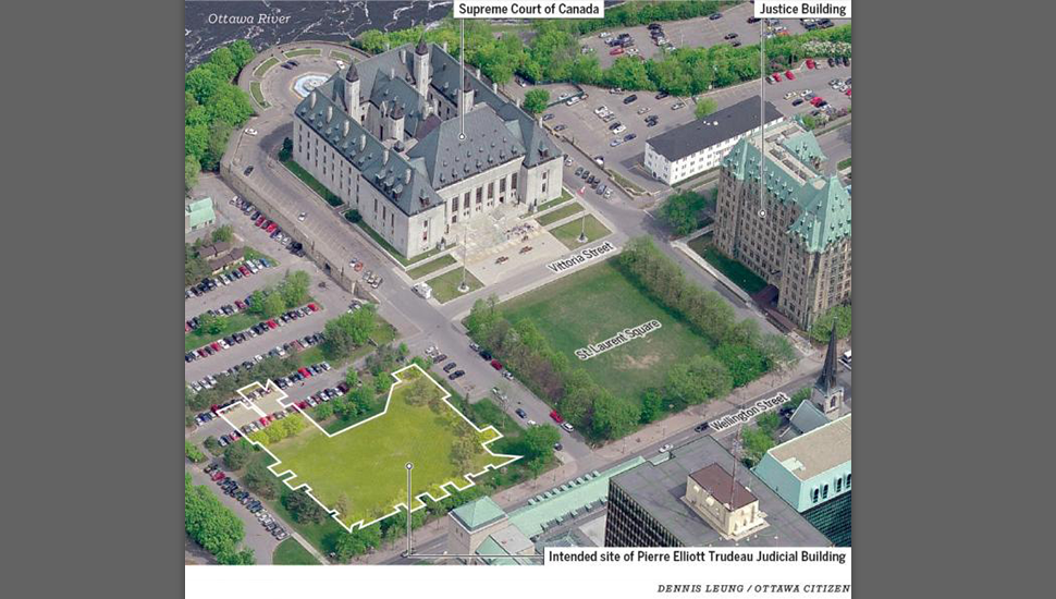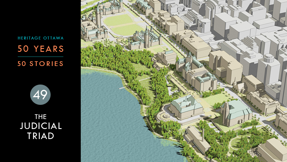 « La Cour suprême du Canada, œuvre d’Ernest Cormier, et l’édifice de la Justice, dû aux architectes Burritt et Horwood – les deux immeubles existants de la triade – sont d’élégantes structures qui apportent d’importantes contributions au patrimoine architectural du Canada. Une fois le troisième immeuble achevé conformément aux plans dressés de longue date, la cité judiciaire sera pour les générations futures une représentation du système de justice du Canada et des idéaux démocratiques qui sous-tendent ce système. »